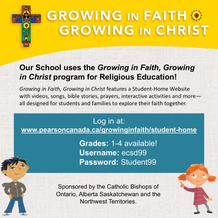 All of the Schools in the Edmonton Catholic School District use a Religious Education Program that is prescribed by our Alberta Bishops and provided through the National Office for Religious Education in Ottawa. The Program ranges from Kindergarten to Grade Twelve, and offers students with an overview of our Catholic faith as well as grade specific themes.